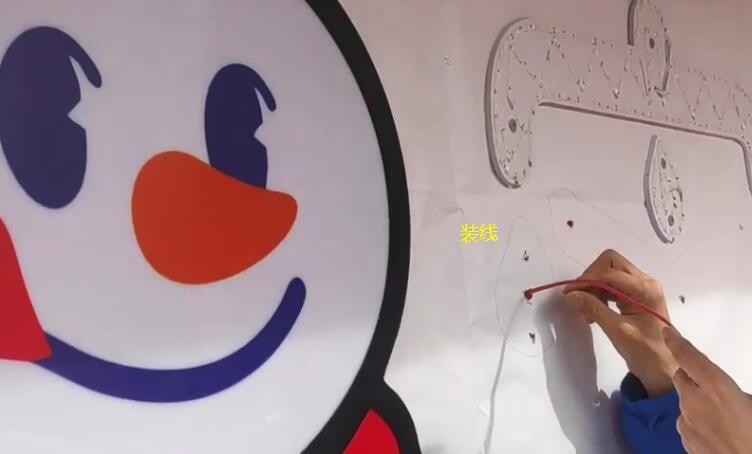 3、将每个发光字背板,根据贴纸上面的纹路安装在贴纸上。